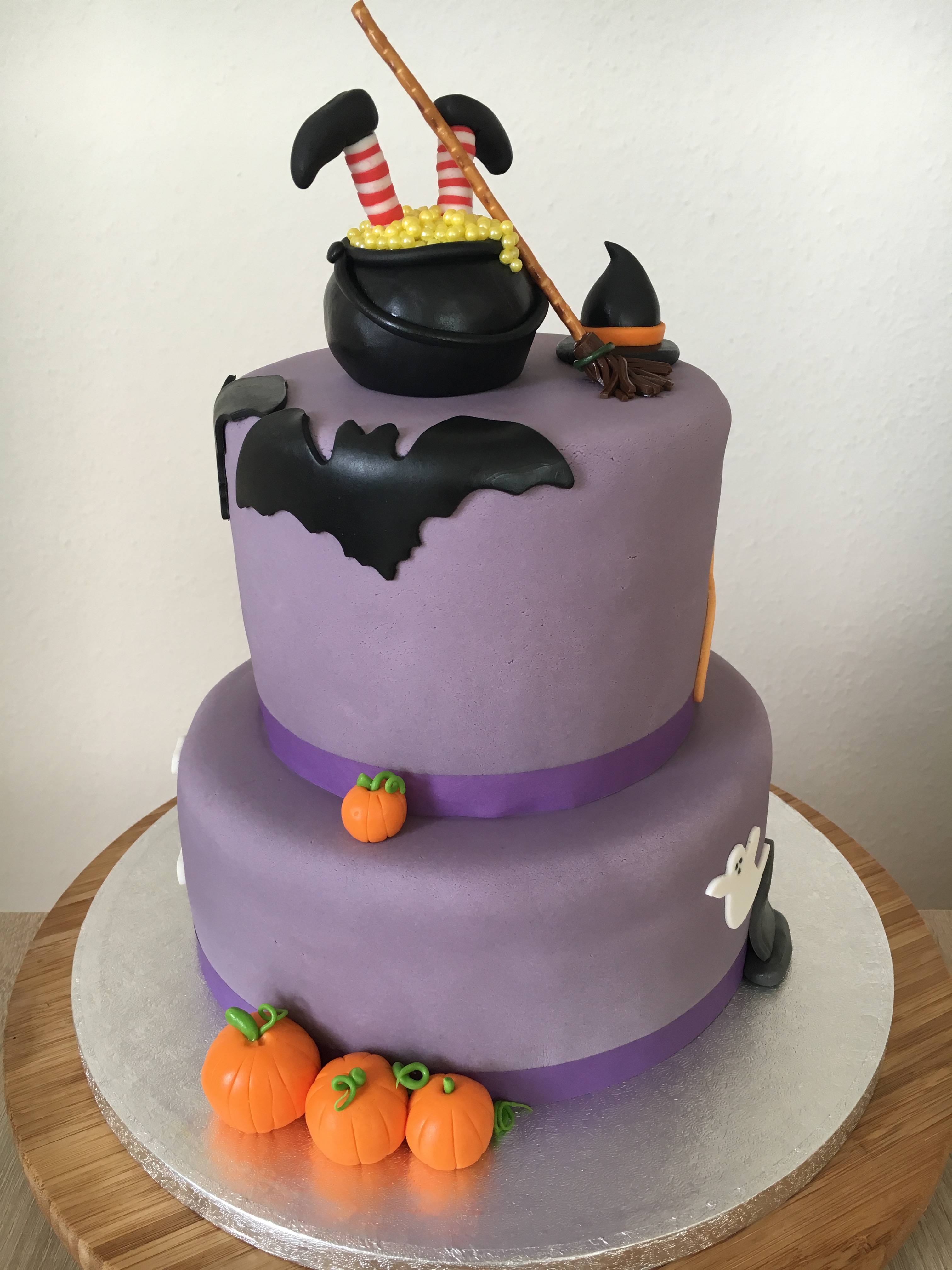 Doppelstöckige Halloween Torte mit der Hexe im Kessel |