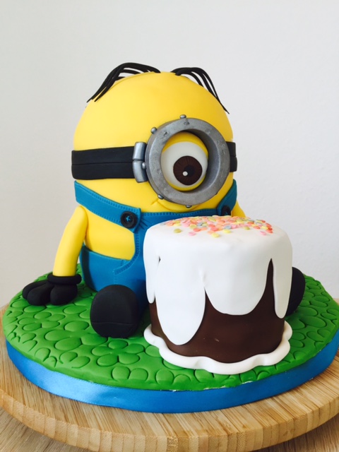 ![]() ![]() ![]() | sitzender Minion als 3D-Torte mit zweiter Torte zum Geburtstag |